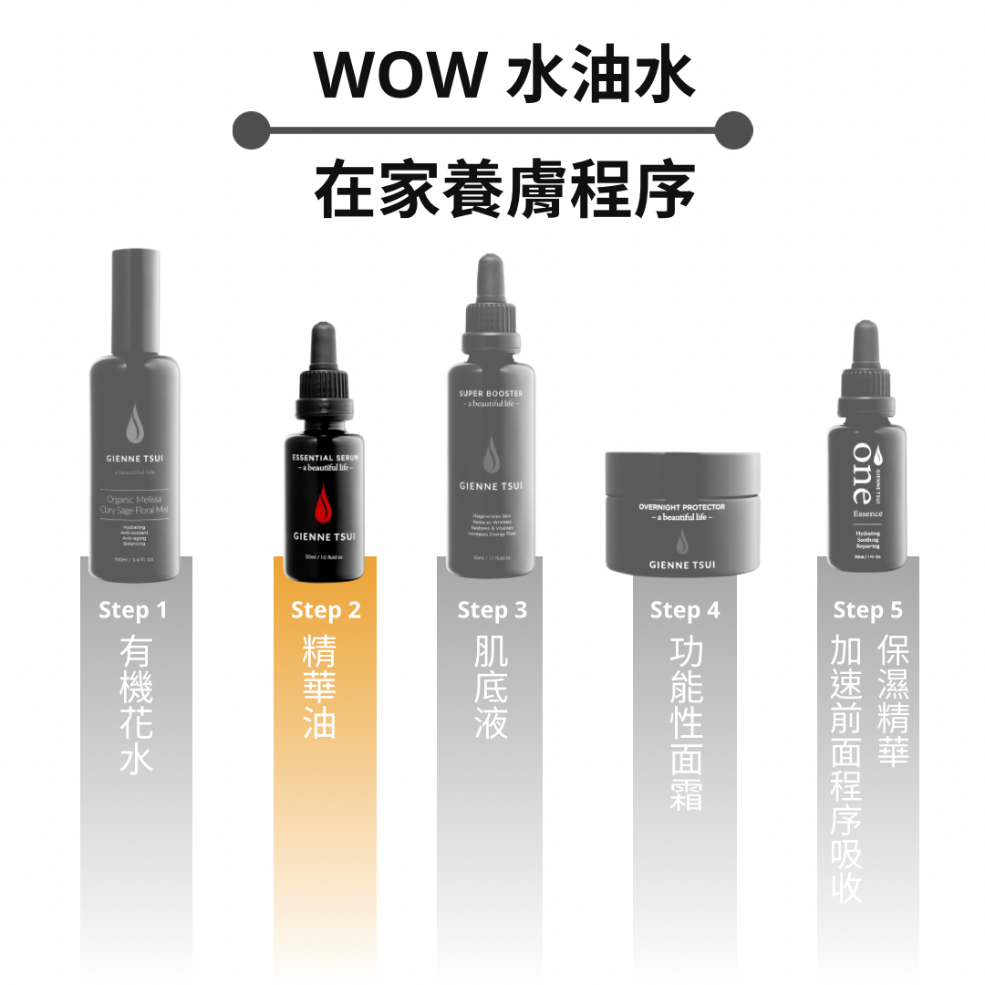 1. 早晚潔面爽膚後,取3-5滴精華油於掌心。
